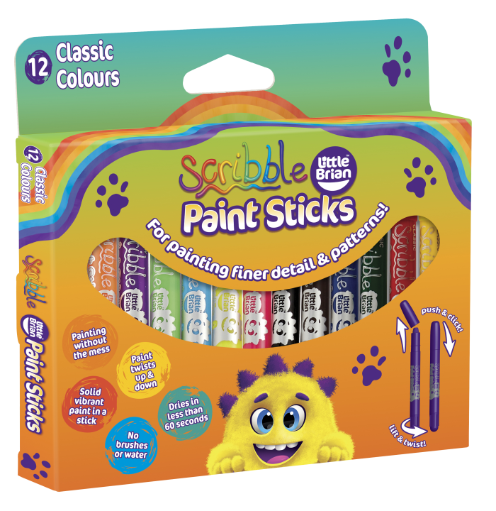 A fun, clean and very convenient way to paint. Water soluble, child friendly solid paint sticks that twist up and down just like a glue stick. Use the