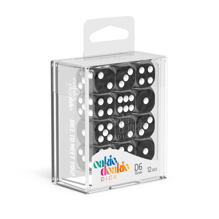 Oakie Doakie Dice Marble – Black 16mm D6 Set Of 12