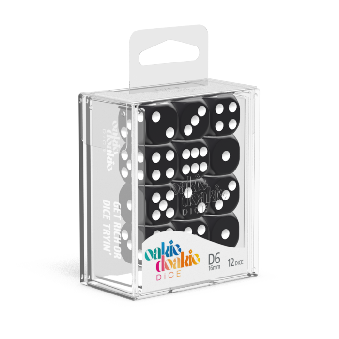 Oakie Doakie Dice Solid – Black 16mm D6 Set Of 12