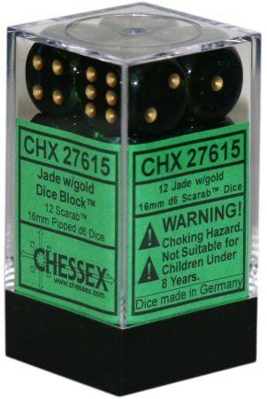 CHX 27615 Scarab Jade/Gold 16mm D6 12-Dice Set