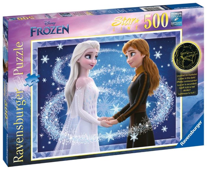 Introducing Ravensburger's Starline puzzle series featuring The Sisters Anna and Elsa with 500 pieces. Perfect for puzzle enthusiasts aged 10 years an