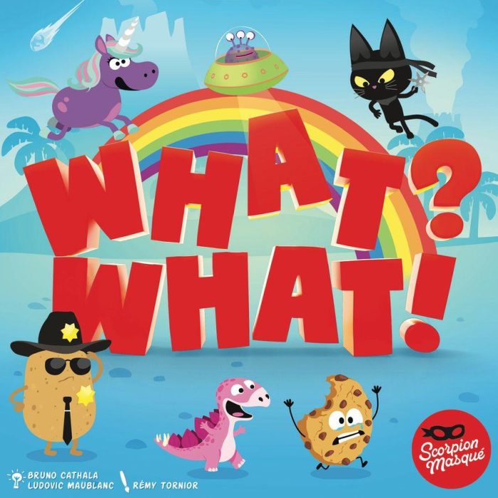 What? What! was inspired by its big brother, Think again!. One player asks very simple questions about zany pictures to all the other players. To win