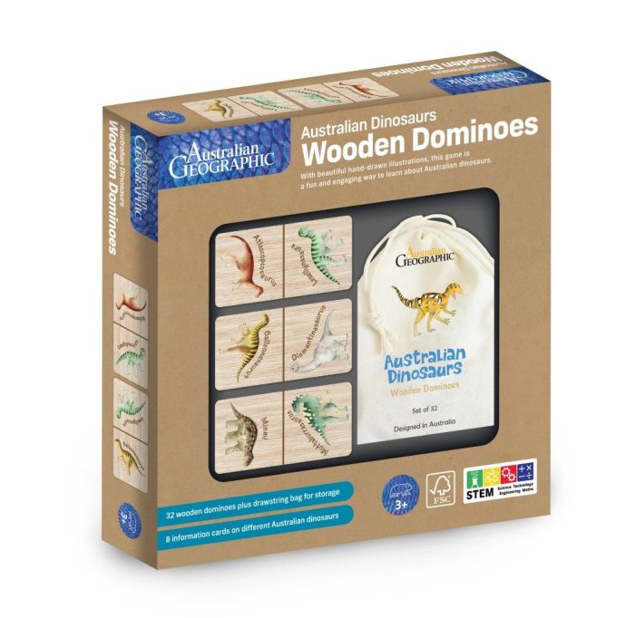 With beautiful hand-drawn illustrations, these dominoes from Australian Geographic are a fun and engaging way to learn about Australian dinosaurs.Did