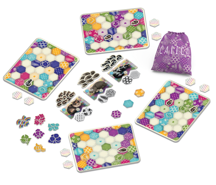 Calico is a puzzly tile-laying game of quilts and cats.In Calico, players compete to sew the coziest quilt as they collect and place patches of differ