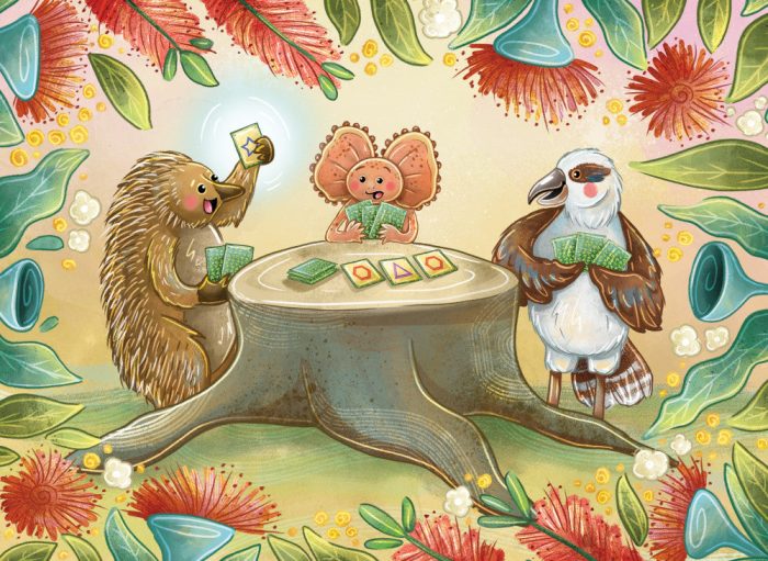 Designs are cute Australian animals in fun gaming moments.Comes with paper envelope - All-in-one purchaseAustralian artist and designer.No text inside