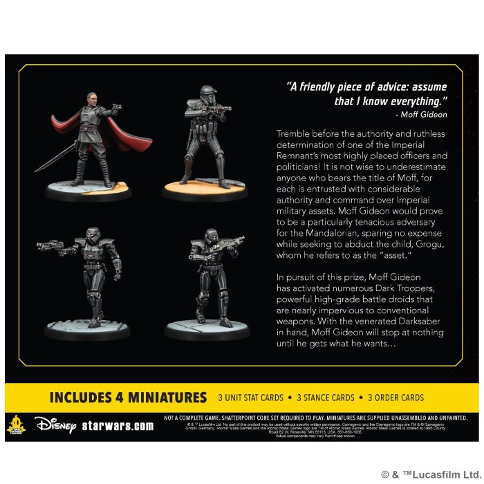 The Empire lives on this new Squad Pack for Star Wars™: Shatterpoint! This pack brings the cunning Moff Gideon to the game as a Primary Unit. He is jo