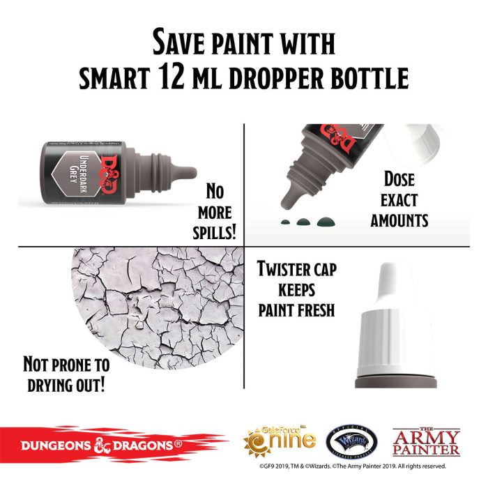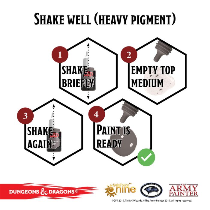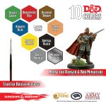10 water-based non-toxic acrylic paints including starter brushIncludes a Minsc and Boo D&D miniatureExcellent coverage and consistencyNon-toxic a