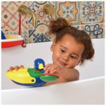 Three little ducklings hide inside Mother duck. The happy family swims together to delight a child at bath time.Length: 18cm (7