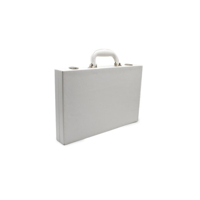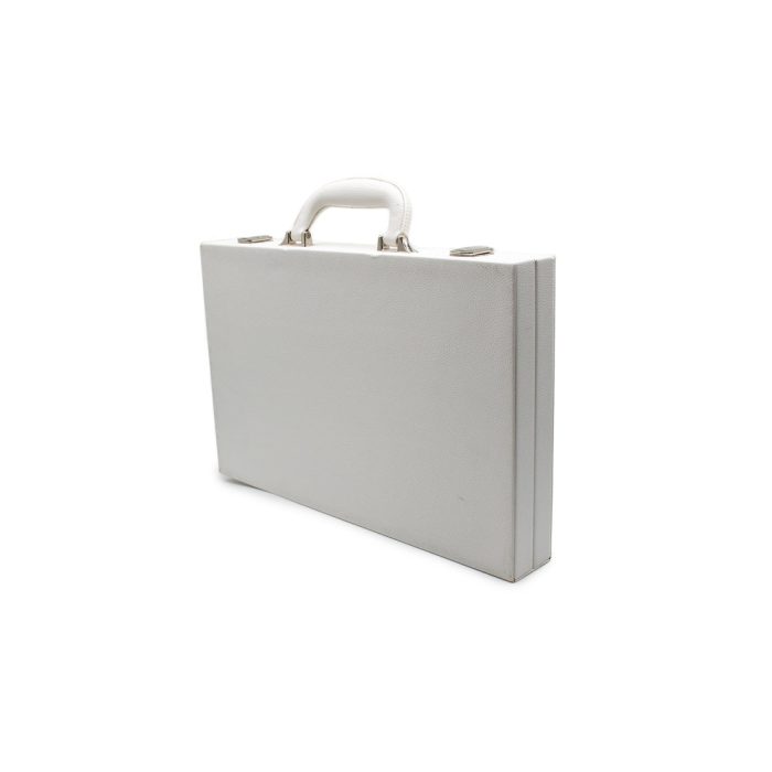 Backgammon – White Leather Attache Case Set [LPG Classics]