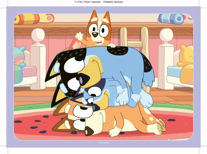 This Bluey Gotta Be Done! Puzzle features the fabulous Aussie pooches from the ABC hit show. Featuring 4 separate puzzles.