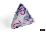 This set contains 7 Gemini Black-White dice with pink numbers with the following shapes: