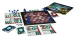 Box contents: four miniatures featuring characters from the Warhammer 40,000 universe, a double-sided game board, 56 cards, tokens, dice, and an energy track.