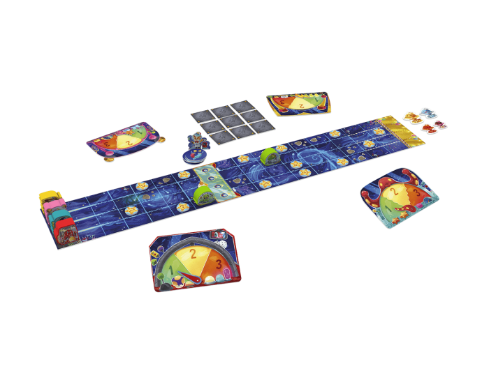 On each turn reveal the control tiles to manoeuvre your spaceship on the track and collect stars. Increase your speed, chose direction but be careful to not lose control or your spaceship will crash!