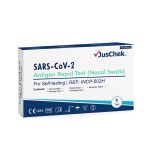 The JusChek SARS-CoV-2 Antigen Rapid Test (Nasal Swab) is a lateral flow chromatographic immunoassay single-use test kit designed for the qualitative detection of COVID-19 using a self-collected nasal swab specimen.
