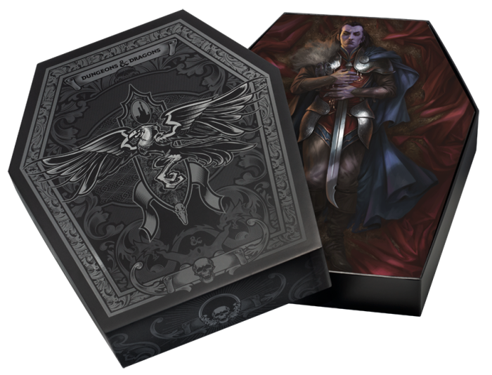 Resting in this coffin is a premium edition of the award-winning Dungeons & Dragons adventure book Curse of Strahd, one of the most beloved D&D adventures of all time.