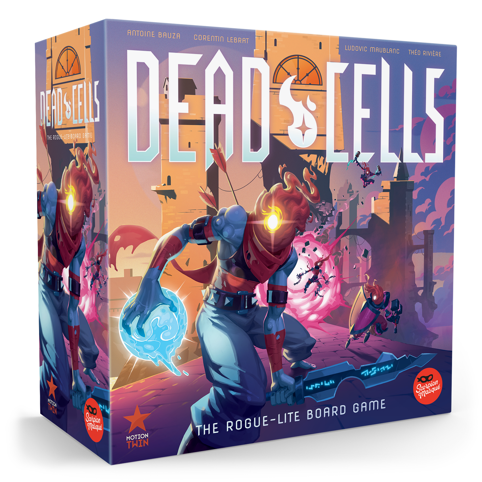Dead Cells: The Rogue-Lite Board Game is a game by Antoine Bauza, Corentin Lebrat, Ludovic Maublanc, Théo Rivière, illustrated by Naïade, Laure de Châteaubourg, Robin Lagofun, Paul Vérité.