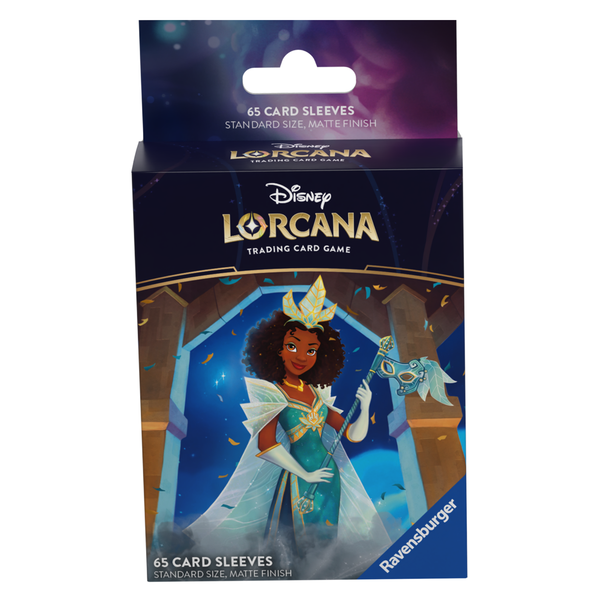 Protect cards from wear and tear during play with card sleeves featuring card art for Disney’s Tiana.Each card sleeve pack includes 65 sleeves.