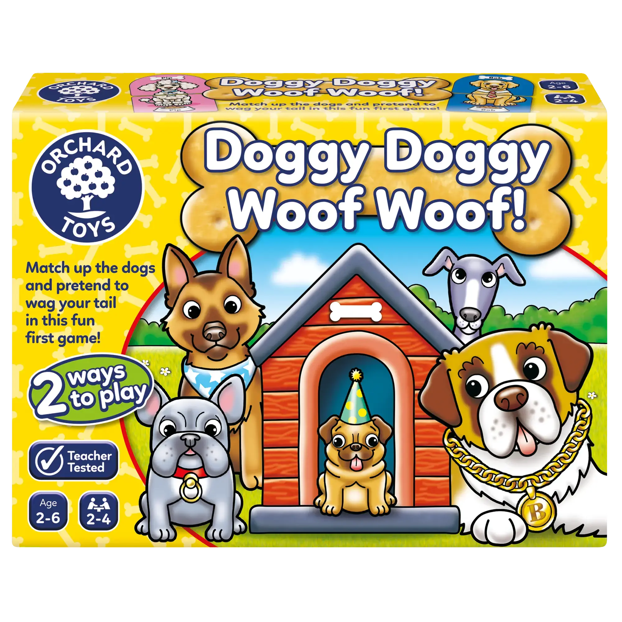 Doggy Doggy Woof Woof! is a lively doggy-themed matching and memory game with double-sided boards and two fun ways to play.