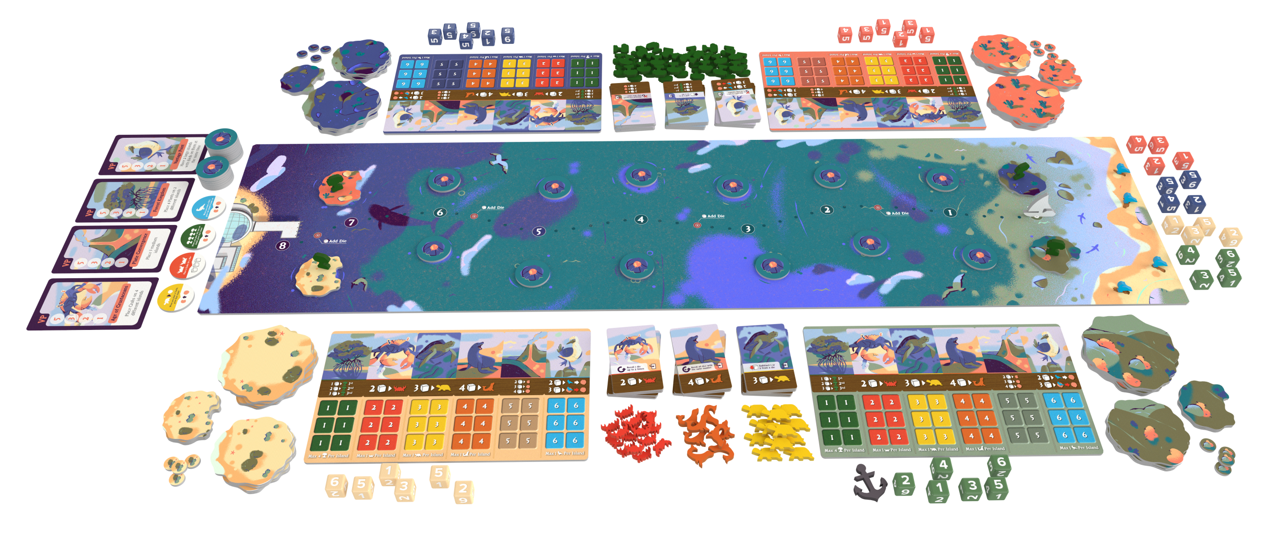 New islands have emerged from the ocean, and as scientists, you must research the new, developing ecosystems present there. Watch the islands on the board grow in three dimensions as you learn more about them, and add colorful plants and animals to each island as you explore their ecosystems.
