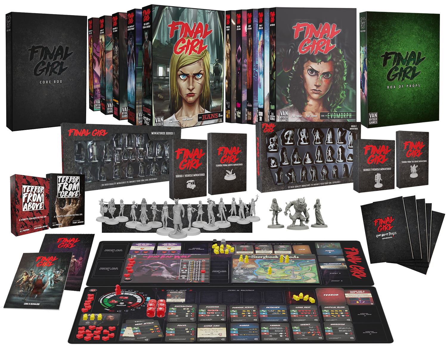 This is a complete, all-in product bundle for Final Girl featuring the Core Box and all ten Feature Films from Series 1 & 2, giving you the whole range of Final Girls and Killer/Locations to customise, expand, immerse and level up your Final Girl gameplay experience.