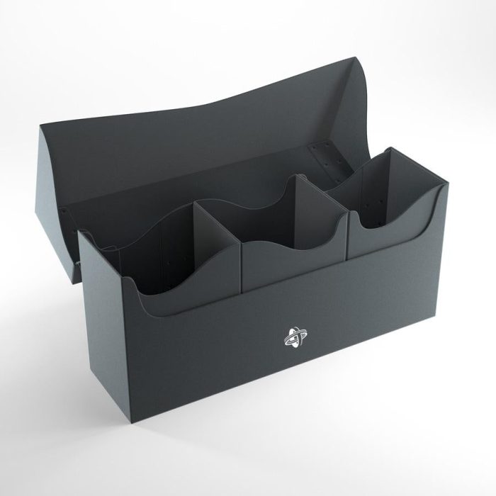 A protective box to store three complete decks or up to 240 double-sleeved cards. This durable box is a functional and affordable storage solution. The 3 inner deck holders are removable and can hold up to 80 double-sleeved cards each. The innovative Cobra Neck technology allows for wide opening of the lid and easy access to cards and deck holders.