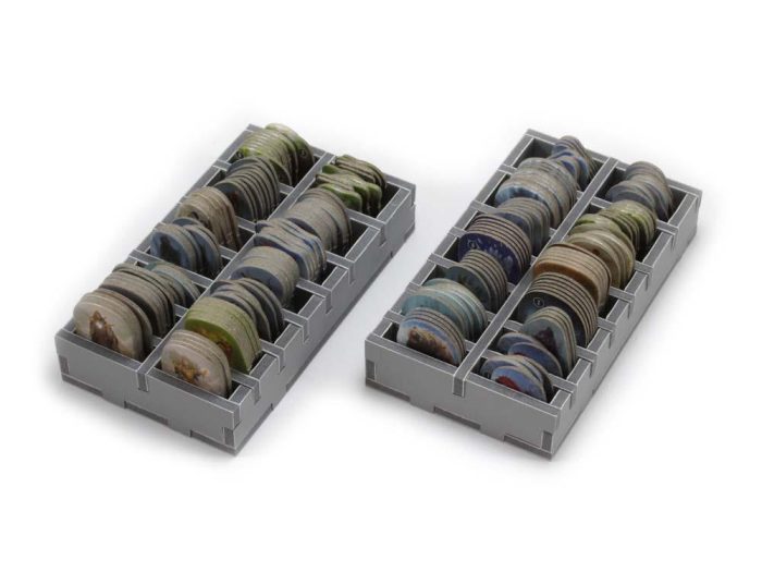 This insert is designed to be compatible with Gloomhaven®. The design provides both efficient storage and improved game play. Many of the trays can be utilised during the game, and they greatly aid set-up and clear-away times.