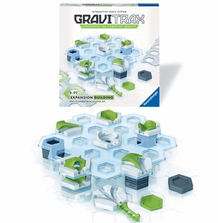 Expand your GraviTrax starter-set with the building expansion pack. This kit lets you extend your run by combining additional base plates and other construction elements with your GraviTrax starter-set. Youll be able to increase the possible combinations and construct even more complex systems. How many detours can you build in before the finish? With the GraviTrax interactive track system, You can design and build your own race tracks and experiment with gravity, magnetism, and kinetics to propel your ball to the finish. With a variety of tiles, levels, tracks and features, you can control the speed of each ball. The open-ended building concept offers endless possibilities to design a different track every time you play. Add flair and speed to your tracks with expansion sets and action accessories. Experience the power of gravity with GraviTrax.