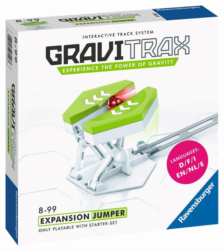 The jumper lifts your marble to a higher level while simultaneously creating a path for a trailing marble to continue its journey on the track below. Combine the Jumper with your GraviTrax Starter Set (sold separately) for an exciting addition to your marble run. Can you get your marbles jumping?