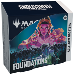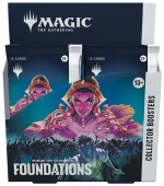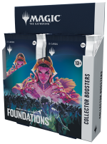 The best time to play your first Magic game is now. Dive into Foundations to create and share your quintessential Magic: The Gathering experience playing with and collecting cards selected to give every player the advantage. In this Collector Booster Box you’ll find 12 Foundations Collector Boosters, each containing 15 Magic: The Gathering cards and 1 Traditional Foil double-sided token. Every pack contains 5 cards of rarity Rare or higher and 4 Uncommon, 5 Common, and 1 Land cards, with a total of 12–13 Traditional Foil cards.