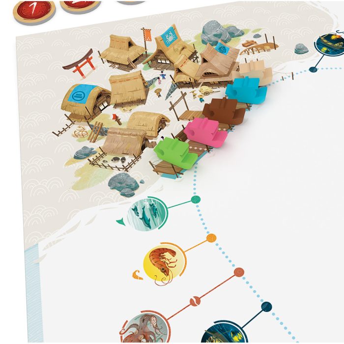 In Namiji, you are fishers from the Japan of yesteryear, navigating south of the Japanese archipelago, a few kilometers from the famous Tokaido road. You will need to have a fruitful day at sea to win the game.