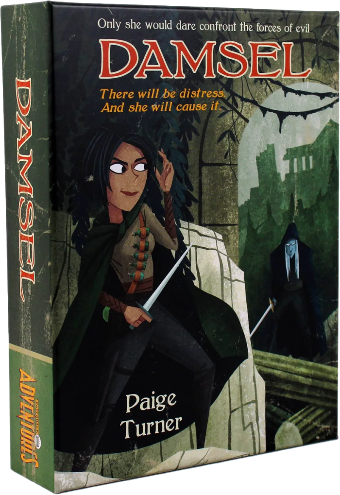 The assassin princess dashes from the shadows! Damsel’s sneak attacks surprise enemies, while toxic poisons can take down even the largest foes. With a unique set of items and letter cards, Damsel is the most aggressive protagonist in Paperback Adventures.