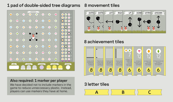 In Scribbly Gum, each player has their own tree diagram and every turn gets to draw a line that leads to food for your baby moth to eat. Collect sets of food to score points. Whoever scribbles their way to the most valuable food wins!