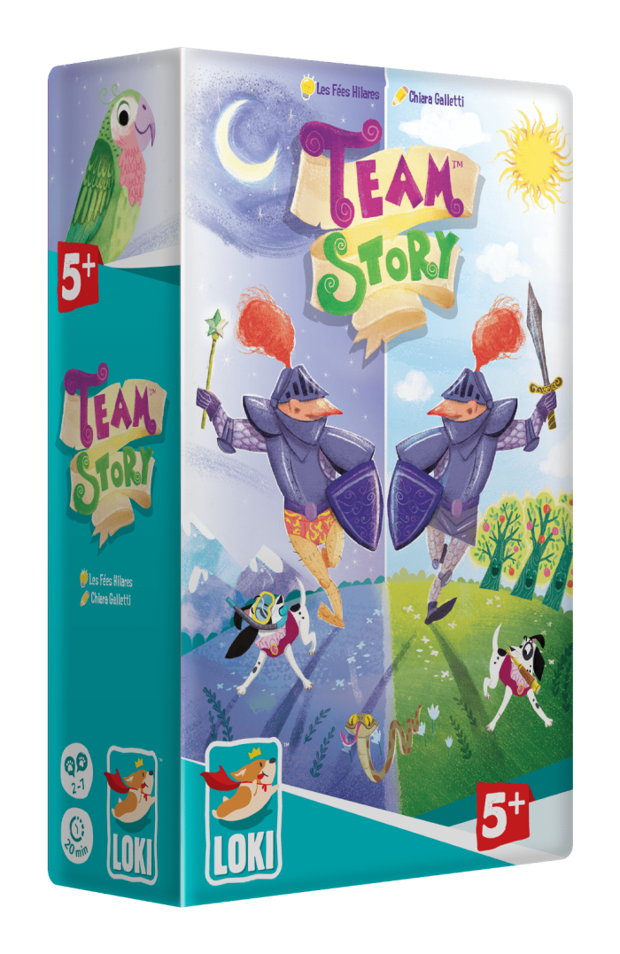 In Team Story, players play as storytellers using the images in front of them to invent a story, which is then told to the opponent. The images are then shuffled together, and the listener must find the right images and put them back in the correct order.