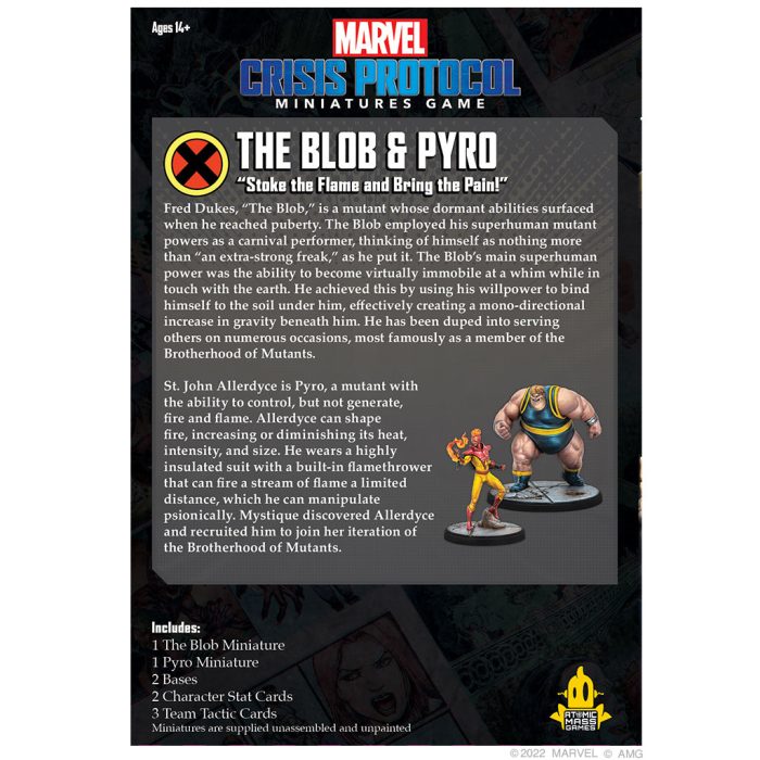 The immovable Blob and fiery Pyro make their Marvel: Crisis Protocol debut in this new pack! Fred Dukes, known to many as the “Blob,” has the superhum