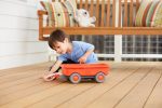 The Green Toys™ Wagon is sturdy and durable, and features a 100% cotton rope handle that easily tucks inside for convenient, safe storage. With chunky tires and a low-set bed, it is the perfect size for little ones to haul around their most prized possessions, both indoors and outside. Made in the USA from 100% recycled plastic with no BPA, phthalates, or PVC. Packaged with recycled and recyclable materials printed with eco-friendly inks.