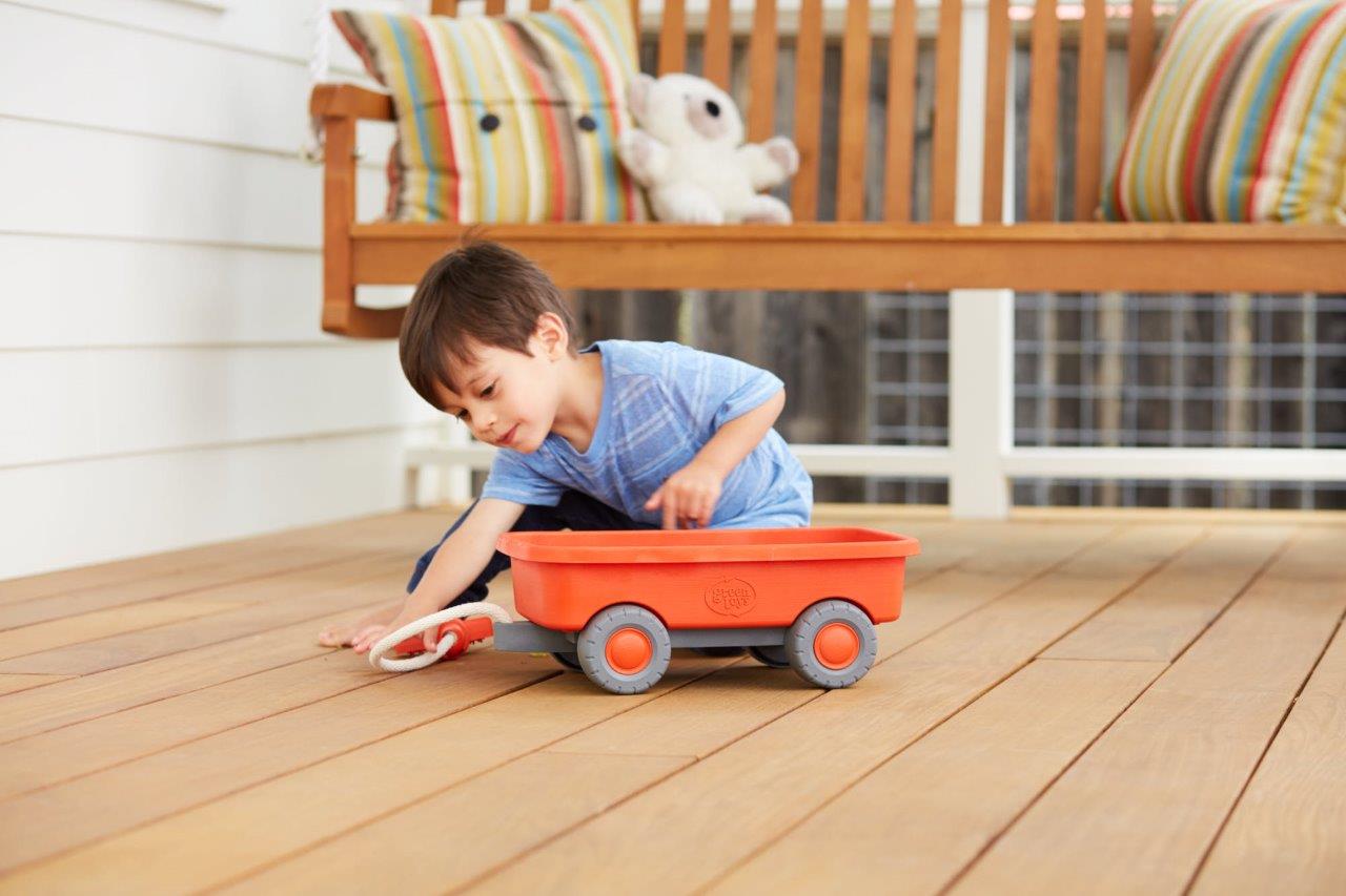 The Green Toys™ Wagon is sturdy and durable, and features a 100% cotton rope handle that easily tucks inside for convenient, safe storage. With chunky