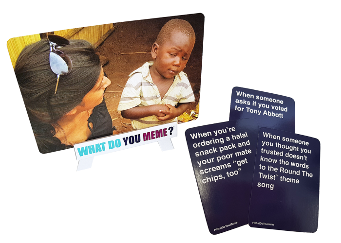 The rules are simple. Each round, a rotating judge plays a Photo Card and everyone else plays a Caption Card to complete the meme. The judge decides the funniest pairing, and whoever played the winning Caption Card wins the round. Lather, rinse, repeat.