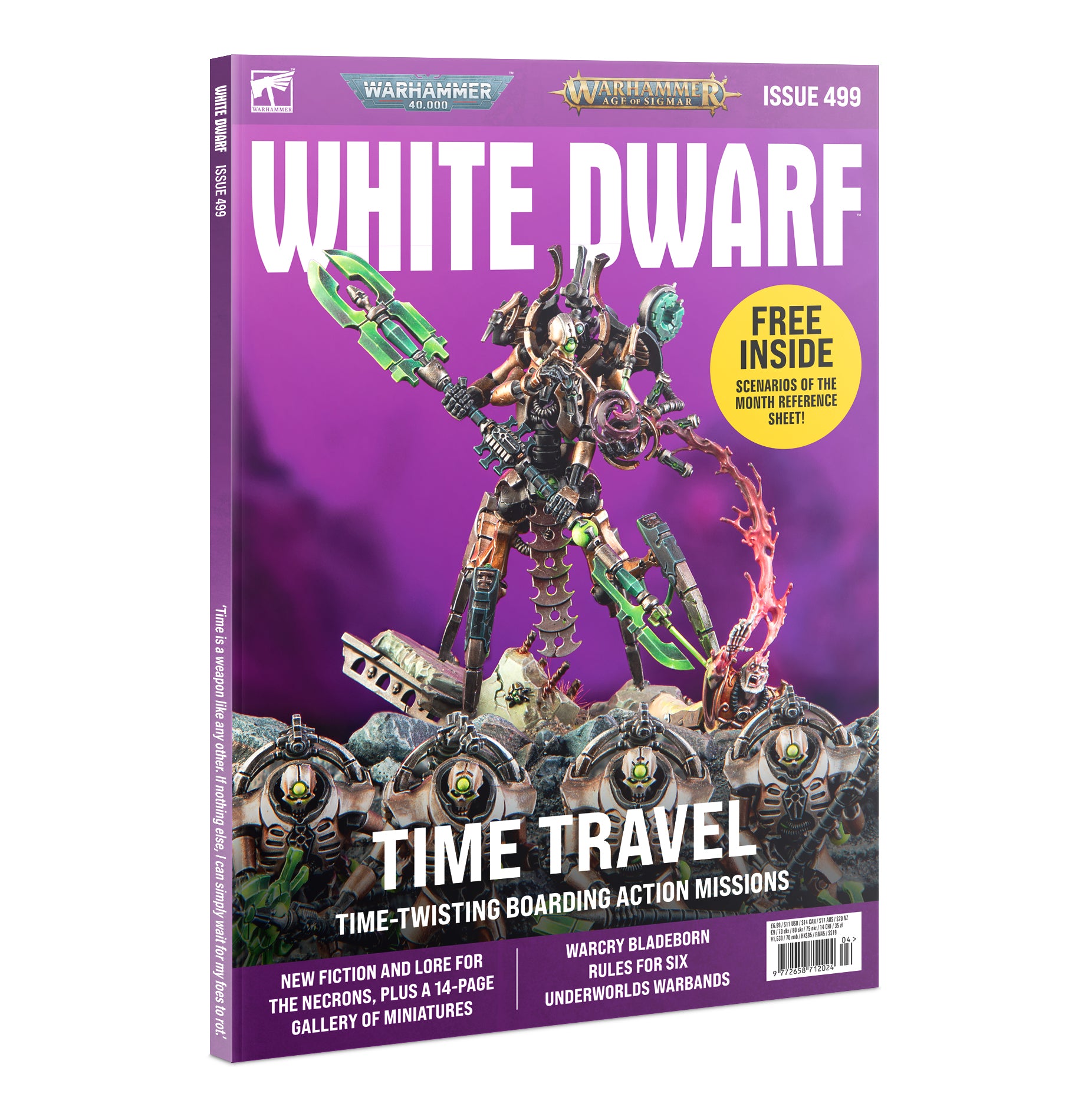 White Dwarf is the official Warhammer magazine, packed with amazing monthly content – including new rules and background, short stories, regular columns, special guests, and more.Here’s what you can look forward to in the April issue:Contact! – Letters, questions, and pictures of miniatures sent in by you, our readers.Inside the Studio – What we’ve been painting recently. Also, a sneak peek of things to come…THE WHITE DWARF BUNKERAccess Granted! – An introduction to this month’s action in the White Dwarf bunker.Challenges – Are you ready for our Psykers, Sorcerers and the Supernatural painting challenge?The Crusade Campaign – New Crusade relics and part two of our campaign. How is your Crusade going?Scenarios of the Month – New scenarios for Warhammer 40,000 and Warhammer Age of Sigmar, plus a Warcry Battleplan Generator.Basic Training – Who has priority here? Hopefully, this issue’s tactics guide will help you find out.Hobby Hangout – Part two of creating a colour scheme: taking an idea and turning it into units of models.Satellite Uplink – The Redditch Tabletop Gamers get in touch, and we take a closer look and magical models.WARHAMMER 40,000A Tale of Four Warlords – It’s the final challenge for James, Rhu, Joe and Andy, and they have pulled out all the stops.Mysteries of the Crypteks – Chrono-psycho-techno-pyromancy. Is there anything Crypteks can’t do? Well, eat…Tempus Purgatus – The first part in a short-long story set in the past-present-future of a Tech-priest.Temporal Abnormalities – You’ll have the time of your life with these chronologically confusing Boarding Actions missions.Galactic War Hosts: Necron Dynasties – Painting and modelling inspiration dedicated to the true rulers of the galaxy.Army Gallery: Purge the Xenos – Golden Demon winner Martin Waller shares his stunning Deathwatch army with us.WARHAMMER AGE OF SIGMARArk Arcana: The Faith and Priests of the Cults Unberogen – Do you have faith in the God-King Sigmar? You should join one of the Cults Unberogen.Dawnbringer Chronicles: The Rattle of the Pipes – Something sinister lurks in the sewers of Hammerhal in this short little tail…Rules of Engagement – You Messin’? Jimbo talks us through his top 10 narrative rules.Deathgorge Bladeborn – Six Bladeborn warbands migrate from Warhammer Underworlds into Warcry.OTHER GAMESNECROMUNDAThe Aranthian Succession: 130 Streets of Death – It’s the final part of the studio’s campaign. But who has triumphed in the underhive?SPECIAL FEATURESWorlds of Warhammer – From ancient grudges to new mutinies, find out how civil war makes civil hands unclean.Legacy of Defiance: IV – And it’s also the final part in our Tome Keepers serial. What will be the fate of Istrouma?Each copy of issue 499 also comes with a cardboard insert, including the scenario of the month for Warhammer 40,000 and Warhammer Age of Sigmar.