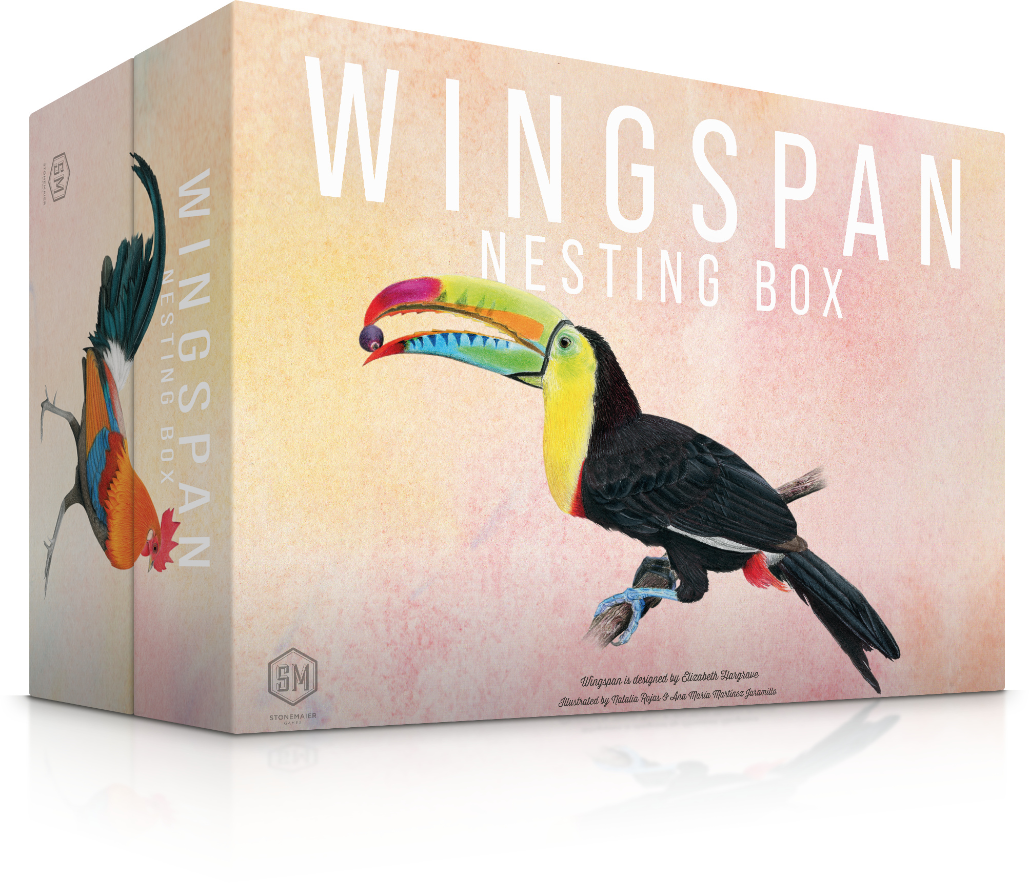 The Nesting Box is an organizer/storage box for all Wingspan content and cards (sleeved or unsleeved). This modular box is designed for all past, present, and future content. It does not include any gameplay content, and it is prepackaged for shipping, so no other items can be added to an order containing a single Nesting Box.