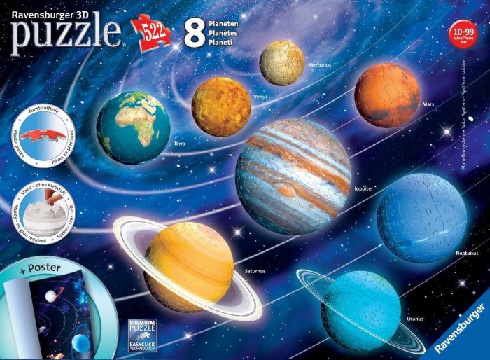 A Puzzle Experience that is Absolutely out of this world! With the 3D Puzzle Solar System, you can learn about our eight planets. The extensive set fe